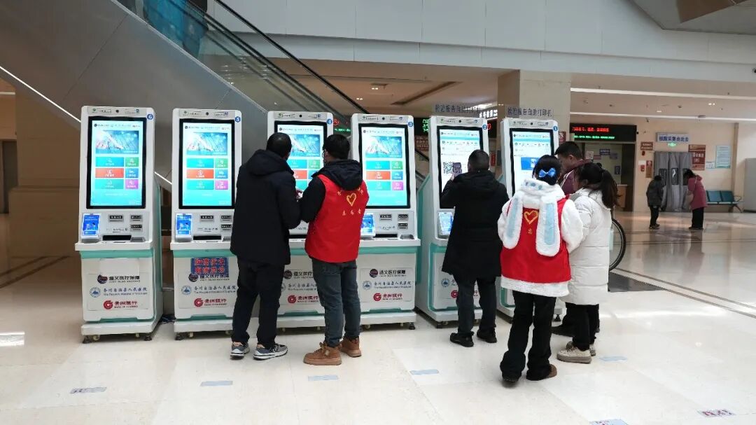 务川自治县人民医院志愿者们正在协助群众使用自助机