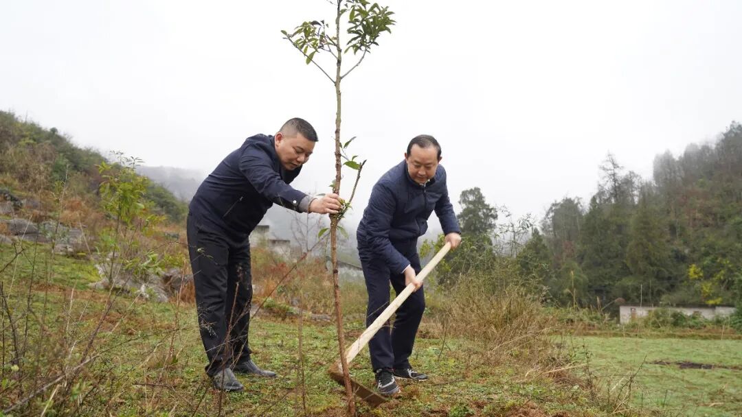 当天上午,邹家文、旺卫、谢劲松、尹强、郑成刚等县领导来到植树区域,与干部群众一起,挥锹铲土、扶树正苗、培实新土,合力栽下楠木、山桐子。植树现场一派热火朝天的劳动景象,大家齐心协力、默契配合,共同为务川再添一抹新绿。