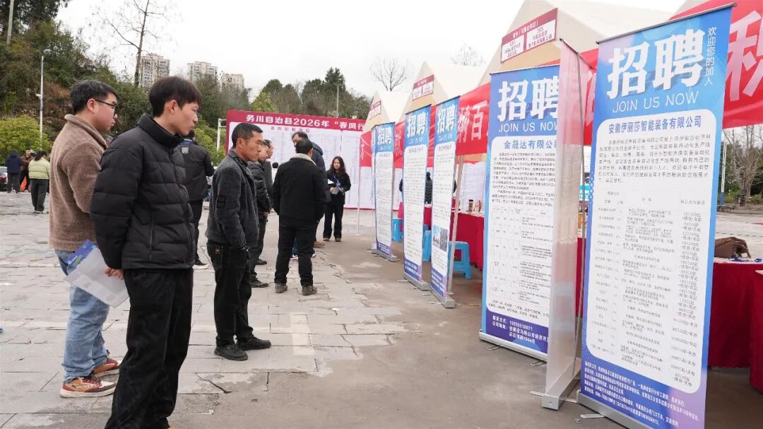 “本次招聘活动是务川扎实推进‘春风行动’、深化东西部劳务协作的重要举措。我们精准对接浙江、广东、江苏等东部沿海企业及本地企业用工需求,筛选优质省内外企业271家,就业岗位1000余个,拟招聘人数达2.1万余人。”务川自治县就业局副局长郑丹说,岗位涵盖制造业、服务业、技工、管理、后勤等多个领域,薪资待遇、社保福利、食宿保障等条件优厚,为大家搭建起家门口对接优质岗位的“连心桥”。