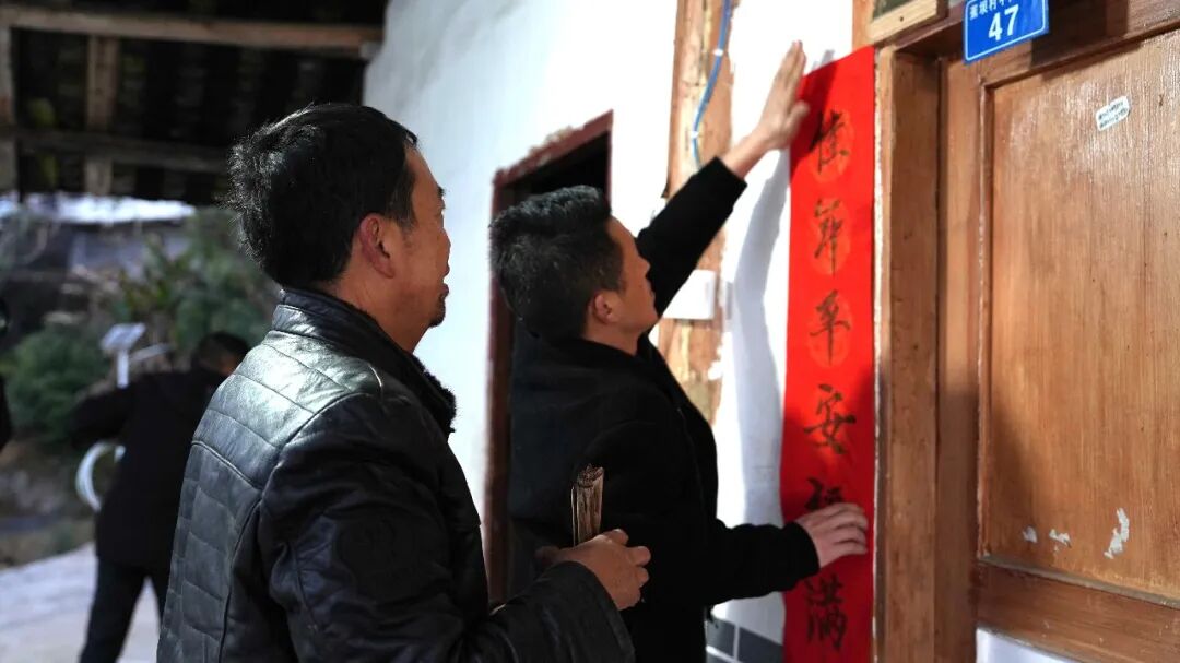 另一边,贴对联、送福字的环节同样热闹。红彤彤的春联,寓意吉祥的福字跃然纸上,村民们一起贴春联、挂福字,红纸映笑颜,墨香融年味,家家户户的门前被装点得喜气洋洋,浓浓的新春气息萦绕在社区的每个角落。