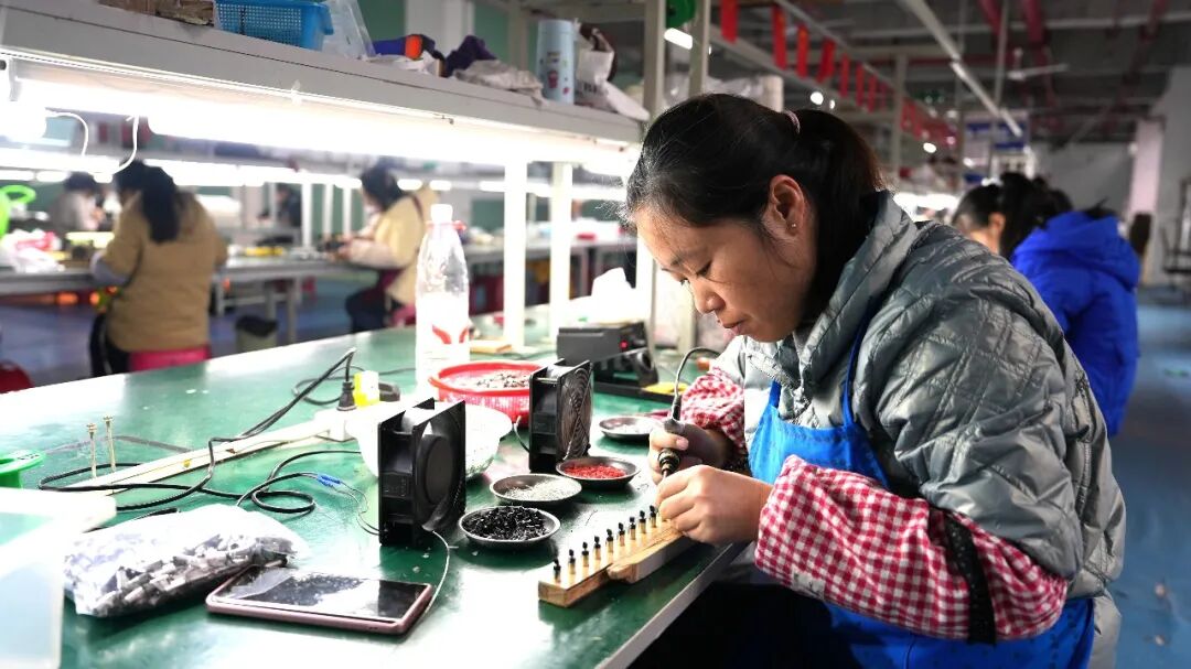 一边是鑫城服饰的服装加工岗位,一边是龙达电子的电子组装岗位,一工一技,适配不同年龄、不同技能的群众需求,让群众在家门口就能找到合适的工作。